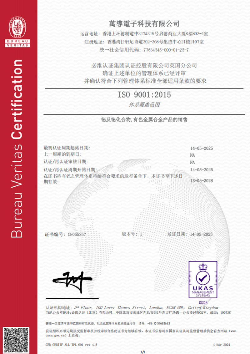 ISO 9001:2015 证书