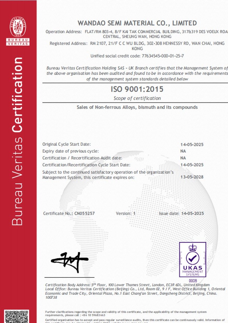 致力于打造全球领先的铋材料深加工研发与制造平台。